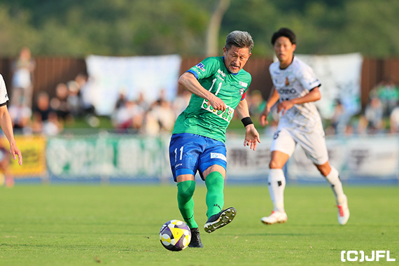 第27回日本フットボールリーグ第15節は7月5日(土)に2試合、6日(日)に6試合が開催され、首位の沖縄と2位の青森が共に敗れ、青森に勝った滋賀が2位に浮上、「三浦知良選手 プロ40周年特別記念試合」として開催された三重県対決は4,917人の来場者の中、3-3の引き分けで今季6度目のベンチ入りとなった鈴鹿の三浦知良は今季初先発で前半のみの出場で今季は2度目の出場となり、自身が持つ最年長出場記録を第12節以来となる前回から21日更新の58歳130日とした。