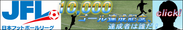 第14回JFLも後半戦を迎え、今季のキャッチフレーズである「たっぷりゴール決めてやれ!」が示す通り、いよいよJFL通算10,000ゴールの達成も間近に迫りました。記念のゴールが生まれるにあたりJFLではファン、サポーターに対し「JFL10,000ゴール達成記念、達成者は誰だ!」と題し、達成者を当てていただき、当選者に記念品をプレゼントしたいと思います。